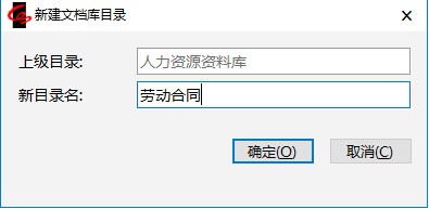 在文档管理栏目中,在分类树中选中某个文档库或其下的某个已有目录,右键【新建文件夹】,弹出如下的“新建文档库目录”窗口,输入新目录名,点击【确定】,回到文档管理栏目,会看到分类树中增加了新建的目录。