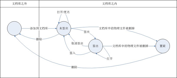 一个文档,从被添加到文档库,直至其被从文档库中删除,会经历如下图所示的状态变化。