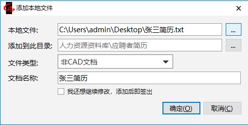 如果文件添加到文档库之后,立即就想签出修改,可以勾选“我还想继续修改,添加后即签出”。