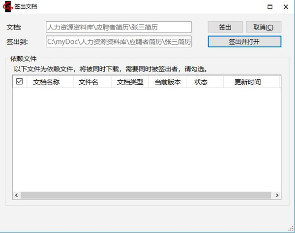 4.点击【签出】,签出文档及其被选中的依赖文档。