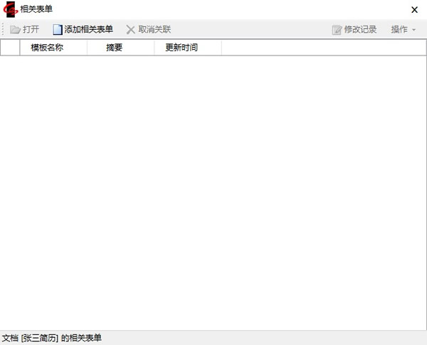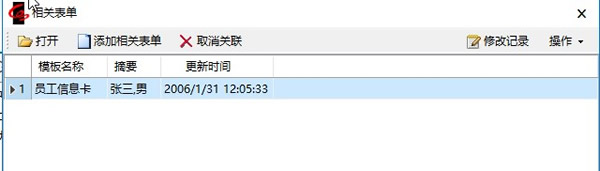 6.在“相关表单”窗口上,选中某个表单后点击【打开】,则能打开相应的表单,查看其内容。