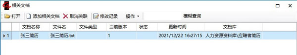例如,我们可以设置文档库中张三的简历和张三的劳动合同这两份文档是相关文档。